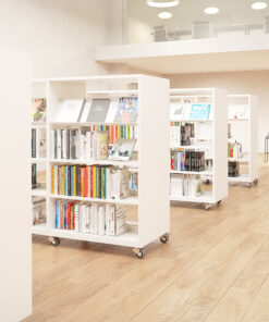 - ekki er mælt með að setja hjól undir hillustæðu sem er hærri en 152 cm vegna þunga safnkostsins og ef það er gert er það gert á eigin ábyrgð.