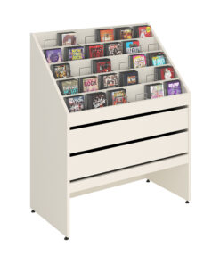 - 5 hæðir, hver með 6 rúmgóðum hólfum til að sýna og geyma geisladiska eða DVD diska