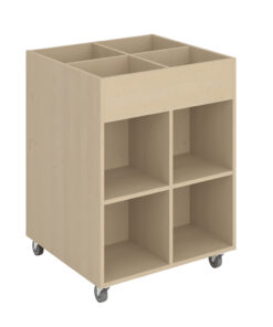 Stór: H: 98,9 cm B: 72 cm D: 72 cm (fjögur hólf að ofan – átta að neðan) – rúmar 185-360 myndabækur