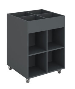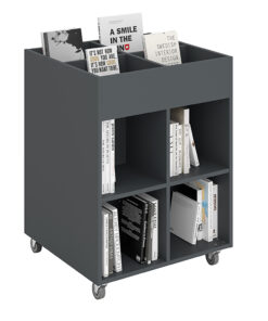Stór: H: 98,9 cm B: 72 cm D: 72 cm (fjögur hólf að ofan – átta að neðan) – rúmar 185-360 myndabækur