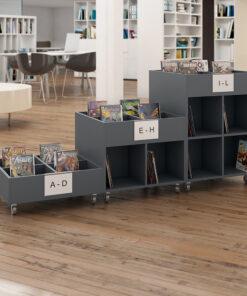 Lítill: H: 28,9 cm B: 72 cm D: 72 cm (ein hæð með fjórum hólfum) – rúmar 55-110 myndabækur